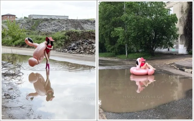Tapi nih ya, seorang model di Rusia yakni Anna Moskvicheva memiliki cara unik tersendiri untuk melakukan protes dengan adanya jalan berlubang di kotanya di mana ia tinggal. Dikutip dari laman odditycentral.com, wanita cantik ini melakukan protes dengan melakukan pemotretan di jalan-jalan berlubang yang juga tergenang air hujan.